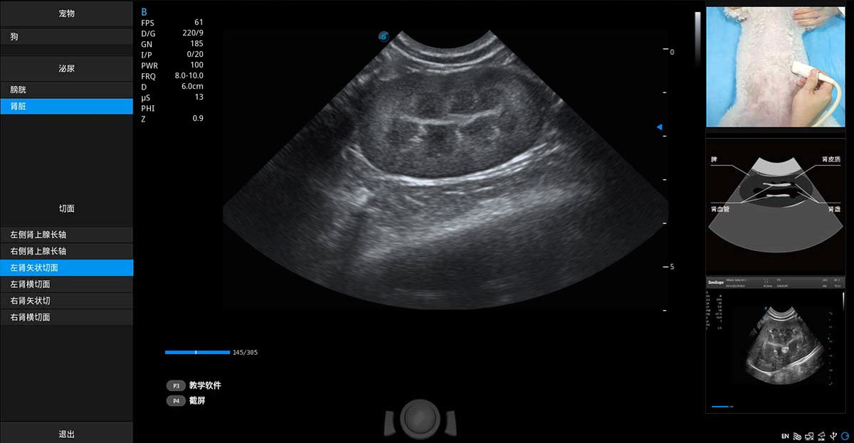 提供解剖示意圖、標準超聲圖像、掃查手法涂和操作者實時檢查圖像,指導操作者進行標準切面的正確掃查。